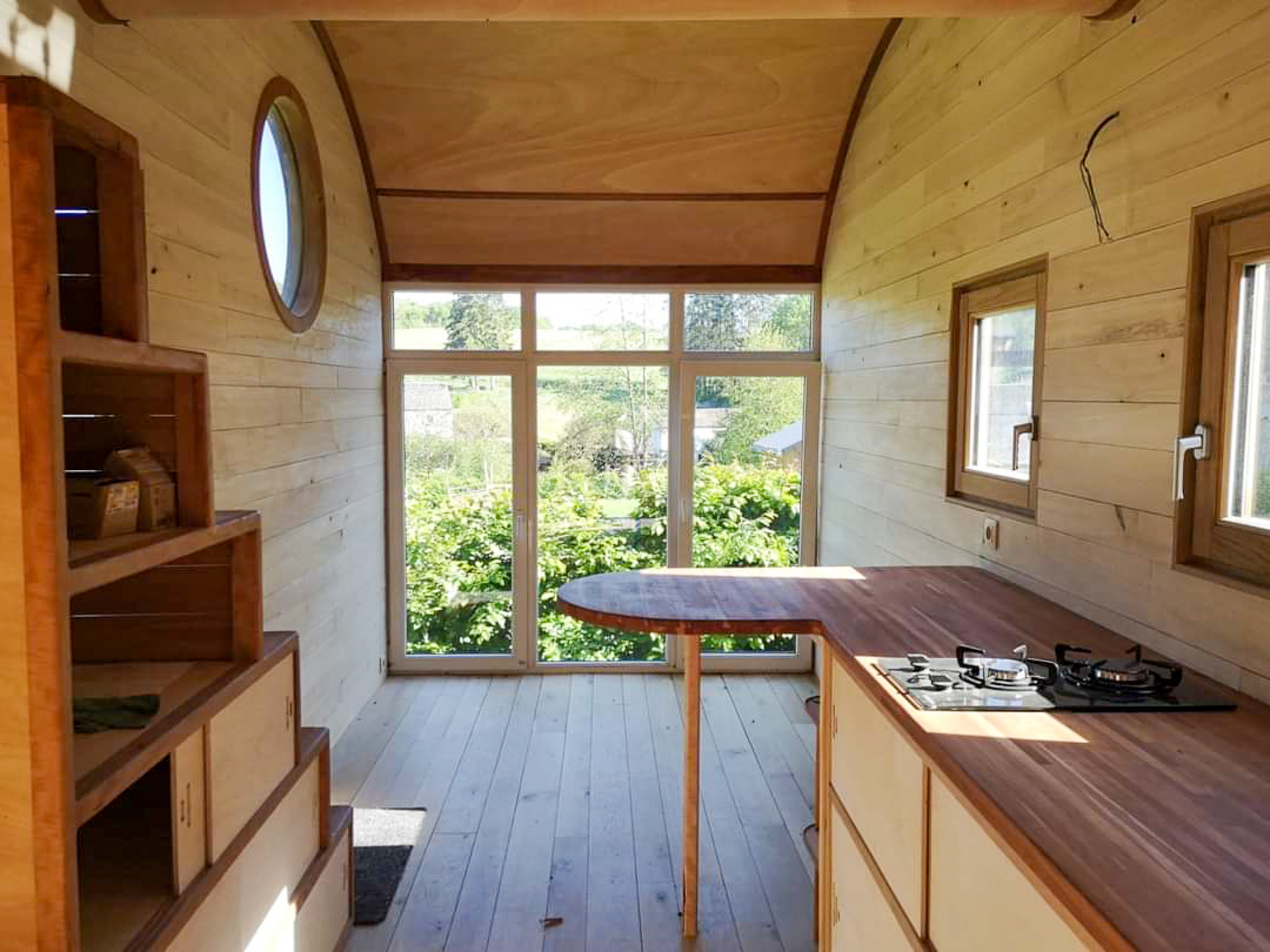 Conçue pour l'édition 2020 annulée de Passion Robinson à Chevetogne, on l'a finalement habitée durant 2 ans. Testée et approuvée, c'est la configuration intérieure qu'on préfère pour ce type de volume. Elle conserve de grands espaces de vie et concentre l'essentiel.
