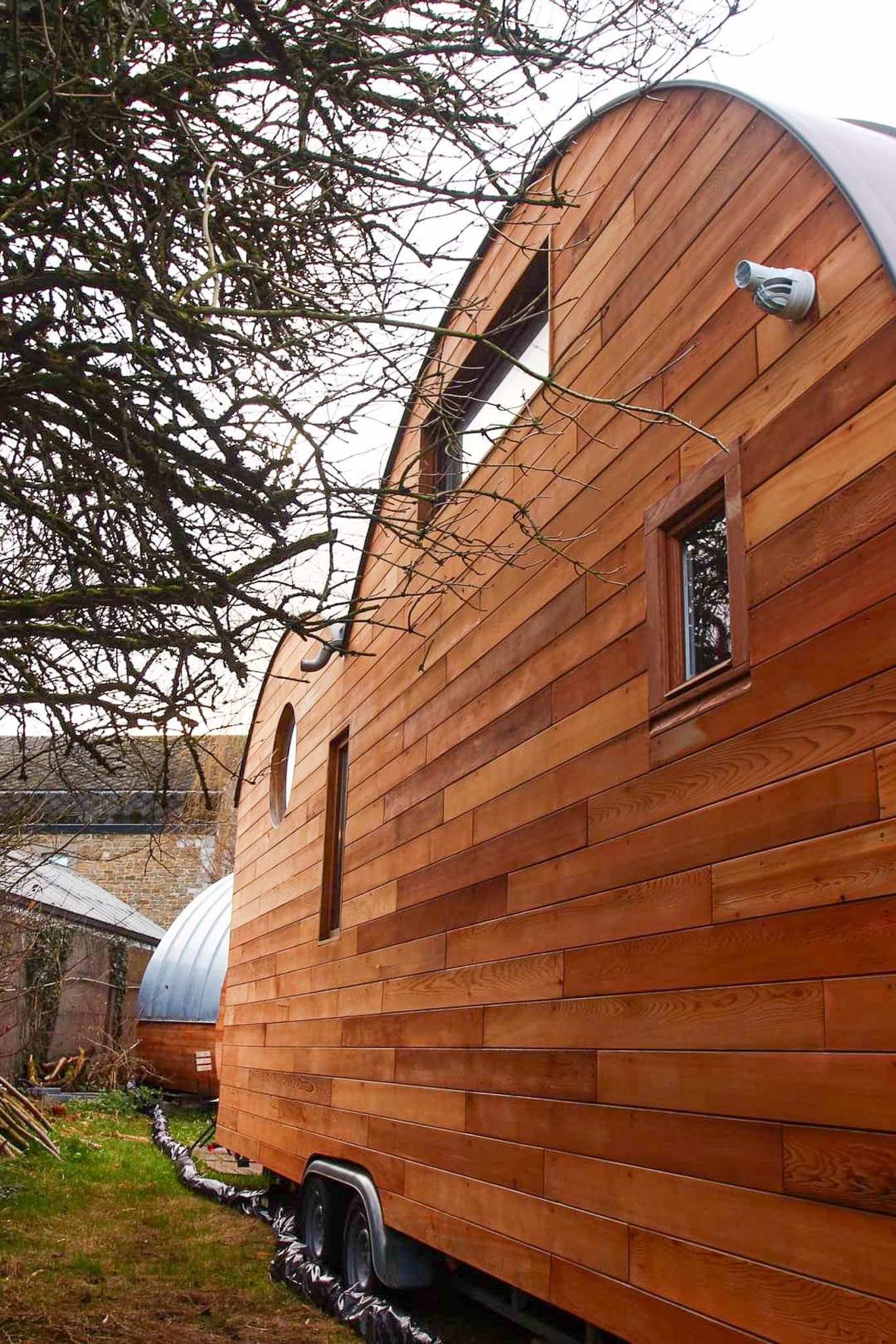 Bardage cèdre, lambris peuplier, plancher chêne, toit zinc et isolation laine de mouton. Chaudière gaz.